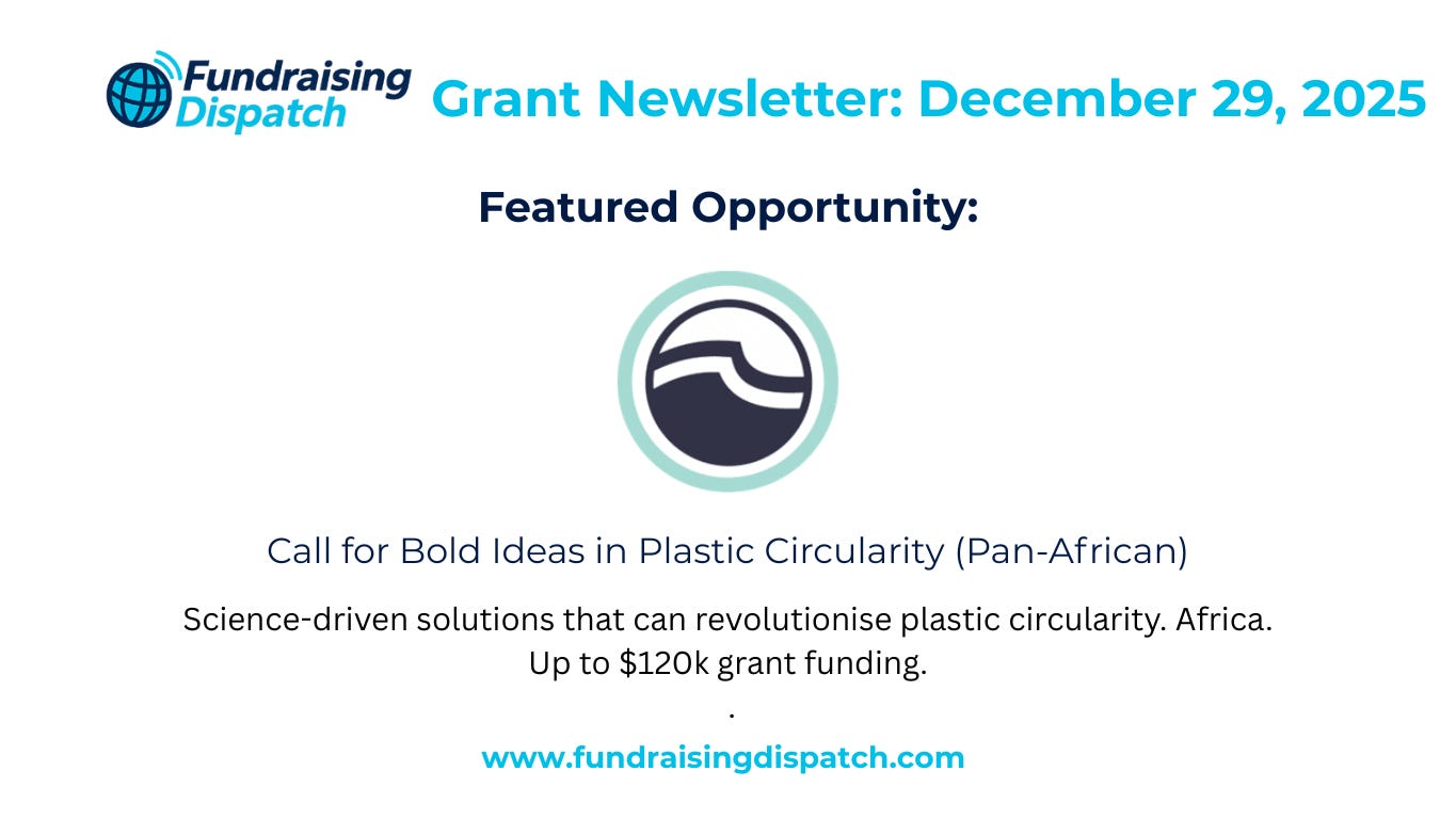 Your weekly one-stop-shop for grant opportunities, calls for proposals, requests for applications, and other programs published by funders like GIZ, Gates Foundation, AECF, Norad, and many more.