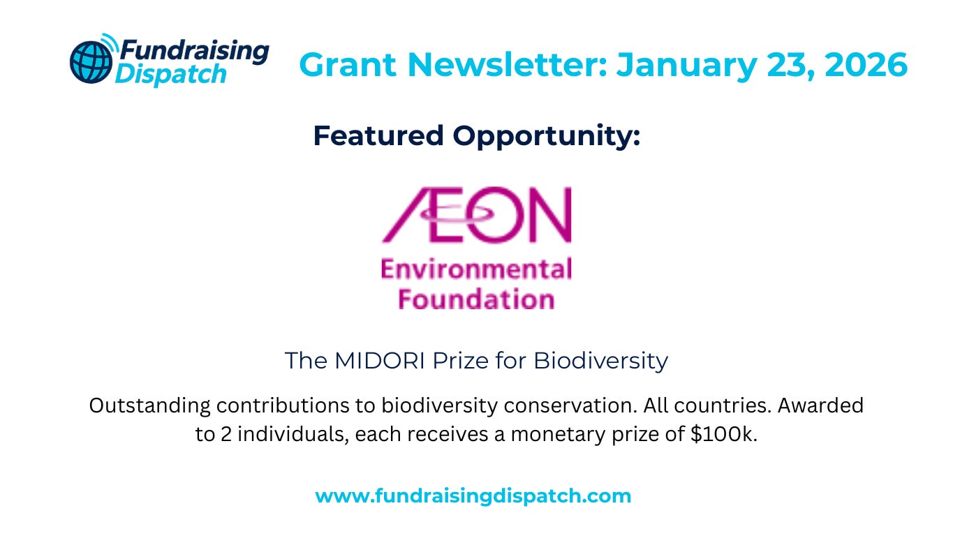 You can just catch new relevant opportunities in your inbox on a weekly basis and then access a curated database here on FundraisingDispatch.com.