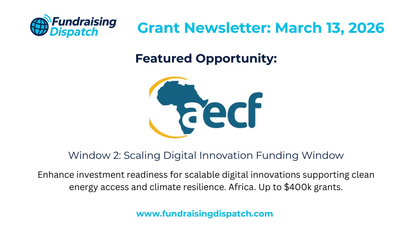 Your weekly one-stop-shop for grant opportunities, calls for proposals, requests for applications, and other programs published by funders like GIZ, Gates Foundation, AECF, Norad, and many more.